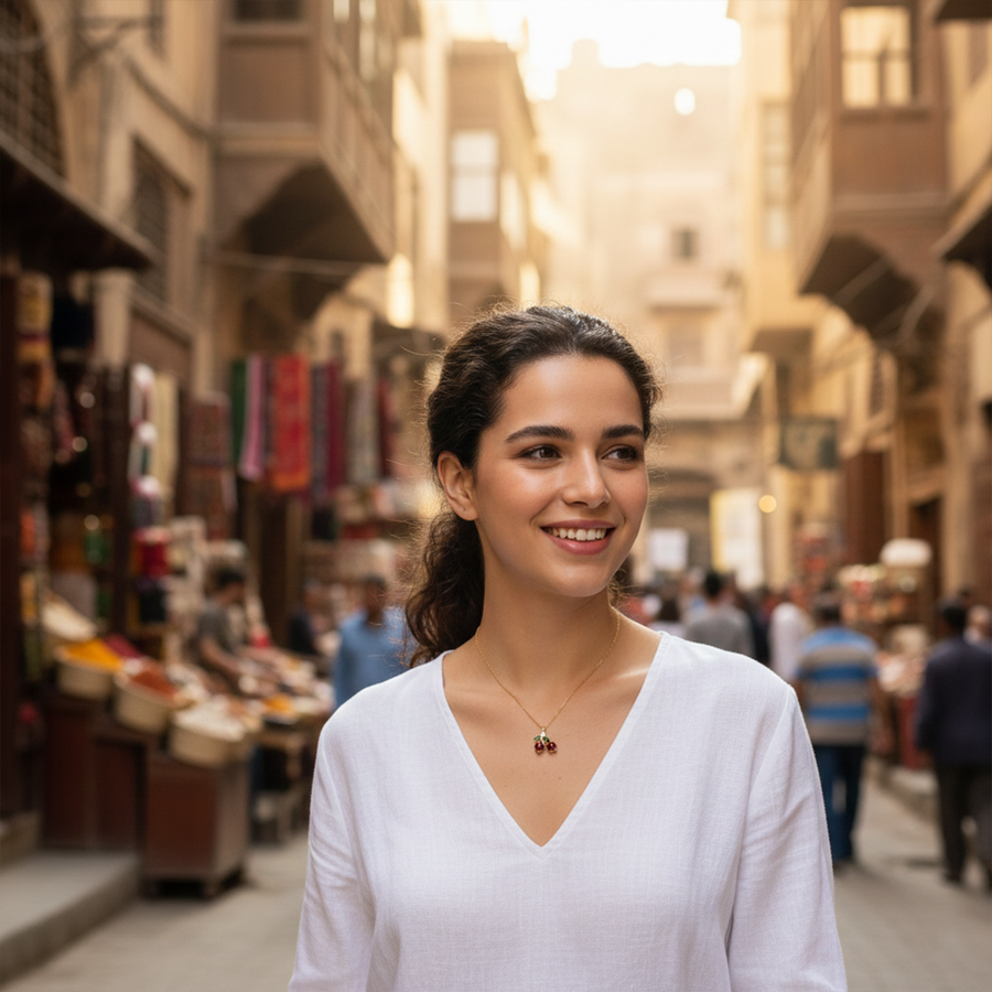 أضيفي لمسة حيوية ومميزة لمجموعتك الخاصة مع سلسلة الكرز الأنيقة. صُممت هذه القطعة خصيصاً للمرأة التي تبحث عن التميز والبساطة في آنٍ واحد، حيث تجمع بين التصميم العصري المستوحى من الطبيعة وبين اللمعان الأخاذ الذي يخطف الأنظار.