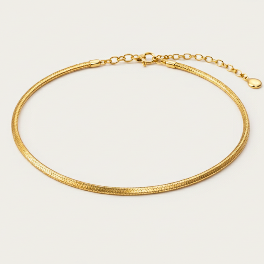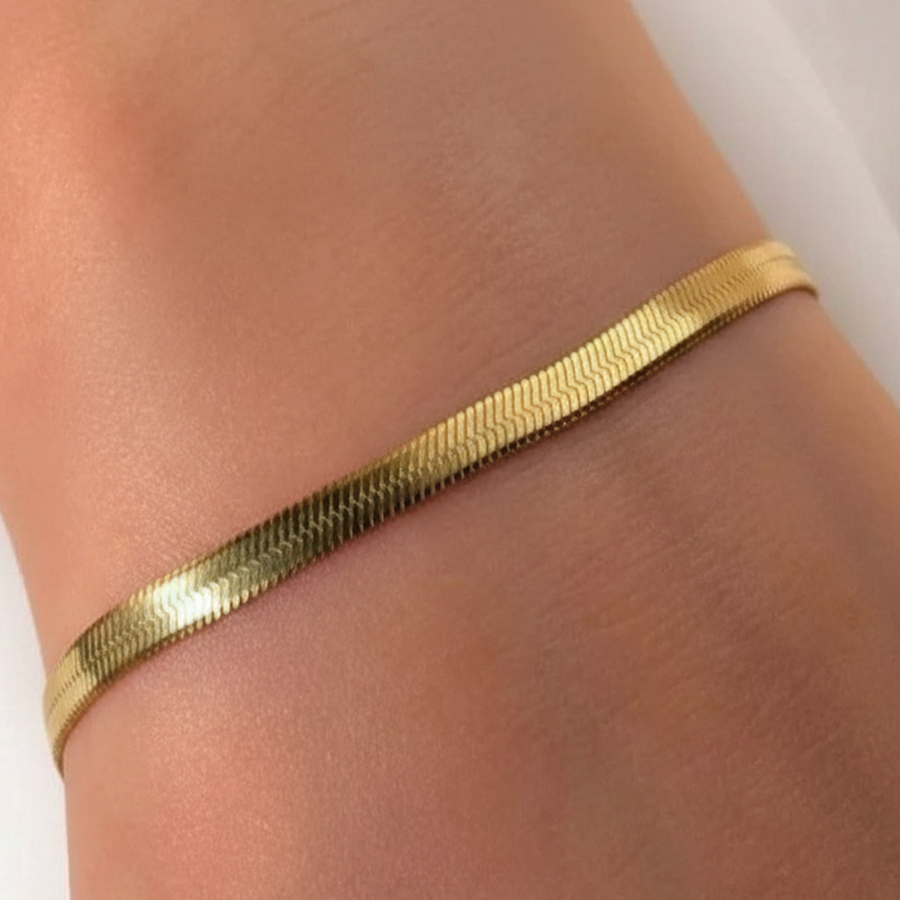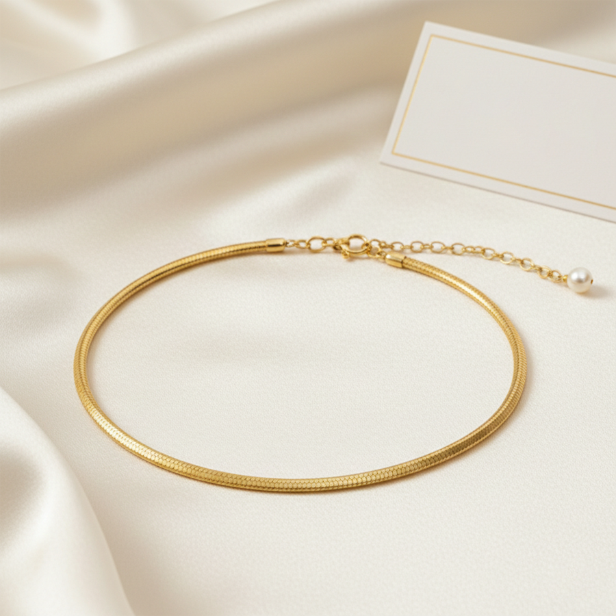 أضيفي لمسة من الرقي الخالد إلى معصمك مع هذا الانسيال الذهبي المصمم بنمط ضهر الحية (Snake Chain). يتميز هذا الانسيال بتصميمه الانسيابي الذي يلتف حول المعصم بنعومة فائقة، مما يجعله القطعة المثالية للمرأة التي تبحث عن الأناقة البسيطة والمودرن في آن واحد.