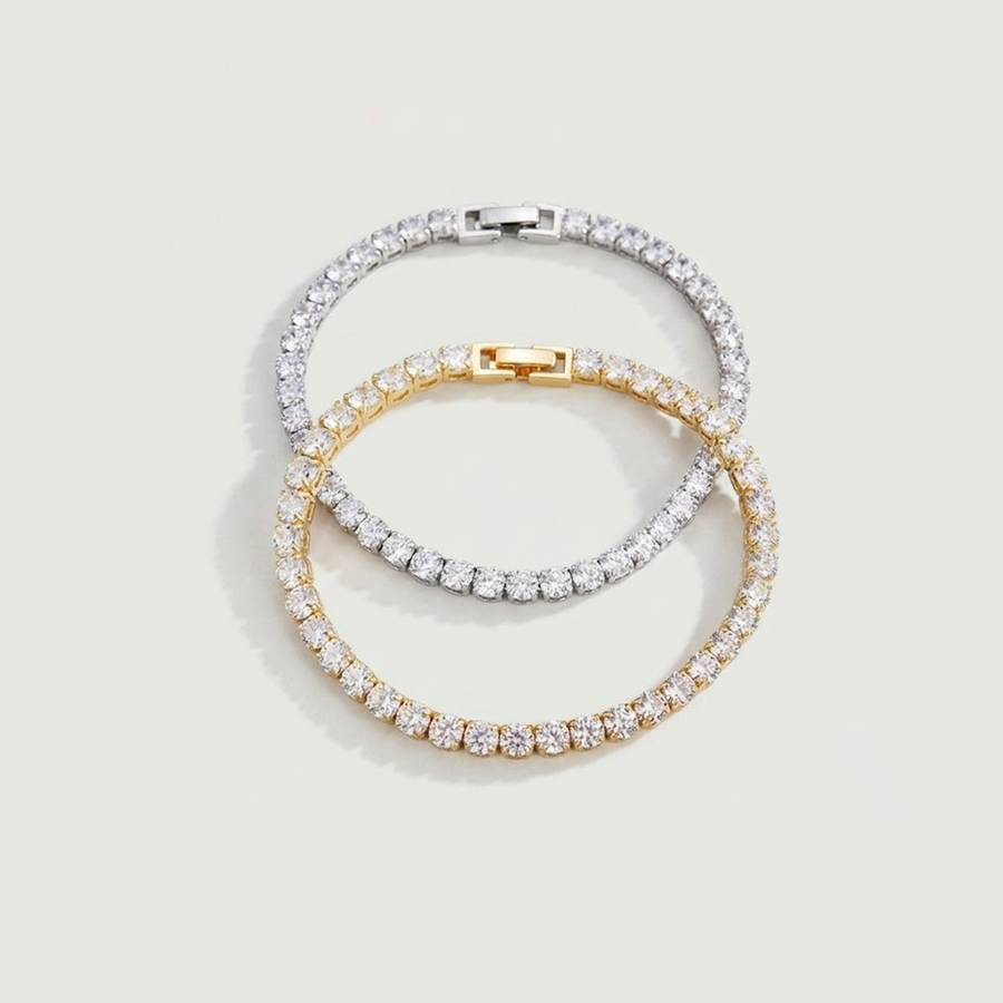 انسيال تنس حريمي أنيق، سوار تنس فضة مرصع بفصوص لامعة بتصميم راقي يناسب الخطوبة والمناسبات والسهرات، قطعة فخمة تضيف لمسة فاخرة لإطلالتك.